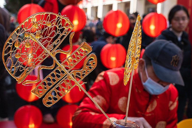 中国各地浓浓的年味儿,也让受益于过境免签政策适用范围不断扩大的外国游客沉醉其中。数据显示,今年春节期间入境游订单同比增长203%。这批爱凑热闹的“歪果仁”来到中国,不仅迫不及待“打卡”舞龙舞狮、糖人灯谜等年俗活动,还不忘美美地体验一把中国人的“过年三件套”——从修剪一头中式发型,到精心挑选美甲图案,再到穿上汉服拍照留念。在外国游客眼中,这个古老的东方大国“好city啊”,有无穷无尽的惊喜等着他们去发现。