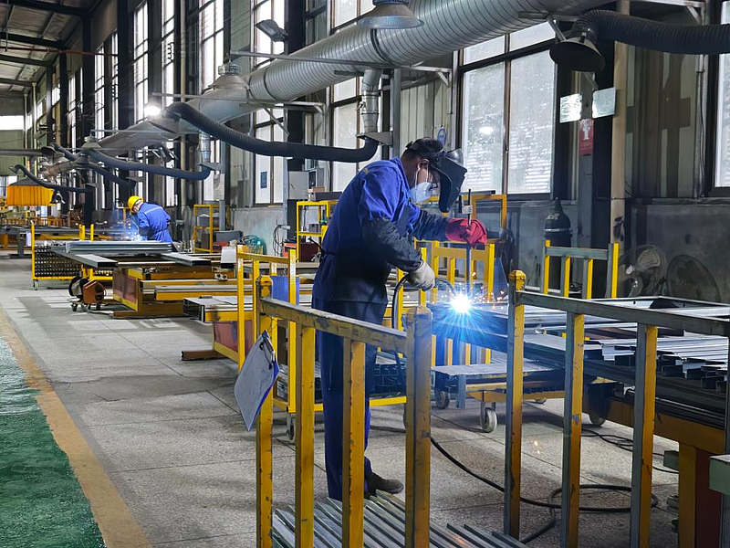 走进湖南省岳阳市湘阴高新区,金为新材料科技有限公司的全自动幕墙加工生产线繁忙有序,员工们正有条不紊地赶制发往柬埔寨的订单。