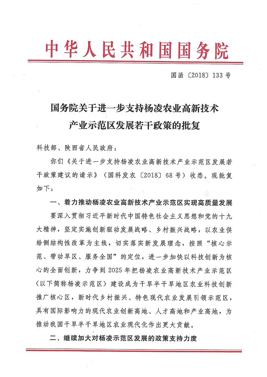 你们《关于进一步支持杨凌农业高新技术产业示范区发展若干政策建议的请示》(国科发农〔2018〕68号)收悉。现批复如下: