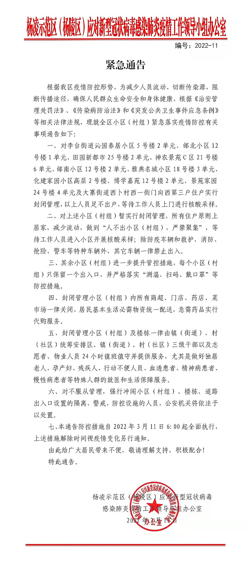 疫情防控11号通告