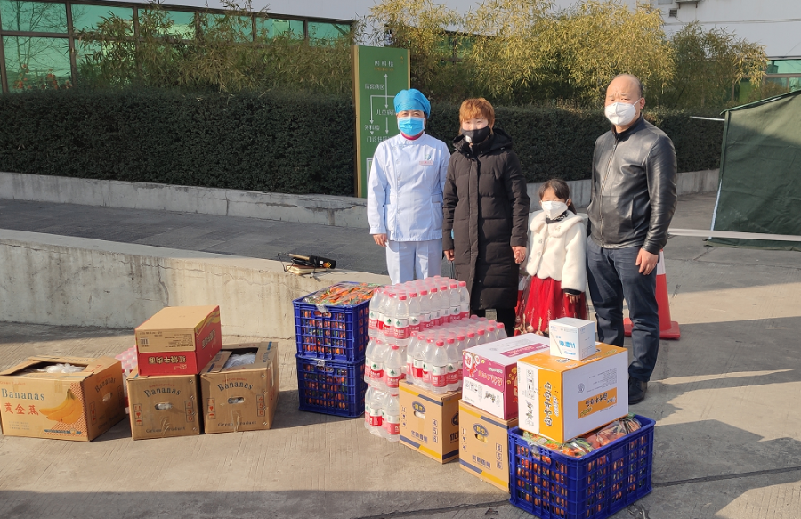 今天,示范区医院已经是她送慰问物资的第二站,第一站是奋战在道路防控一线的公安交警。
