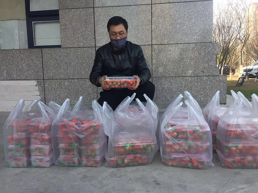 此外,当天杨凌尚特梅斯庄园还捐赠71盒爱心草莓,总价值3000元;西域美农捐赠4000只防护口罩,以实际行动践行企业的责任与担当。