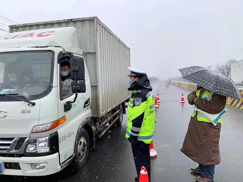 大雪落城,疫情当前,示范区公安局民辅警冒雪坚守,全身心投入到疫情防控、车辆人员筛查、防控处置、道路交通安全管理等一系列工作中。