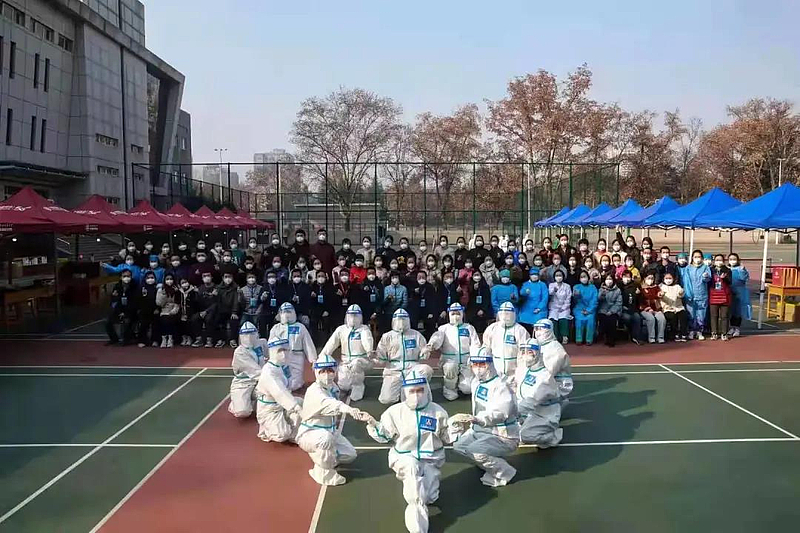 短短的20余天,祝小娟所在的核酸采样队来到了当时西安疫情最高风险的封控区内,辗转长延堡街道、西北政法大学(雁塔校区)、东仪社区、华城国际、中环国际、杏园小区及陕西师范大学等地方,不畏严寒和疲劳,虽然工作期间一直要穿着厚重的防护服,但是没有一个人叫苦喊累,用默默付出与担当,确保了采样工作的有序进行,得到了居民群众高度肯定和陈赞。