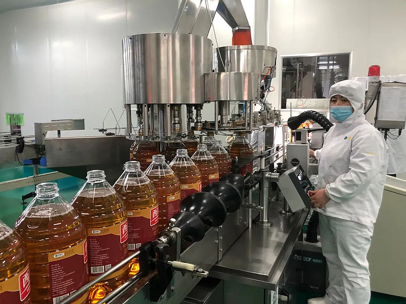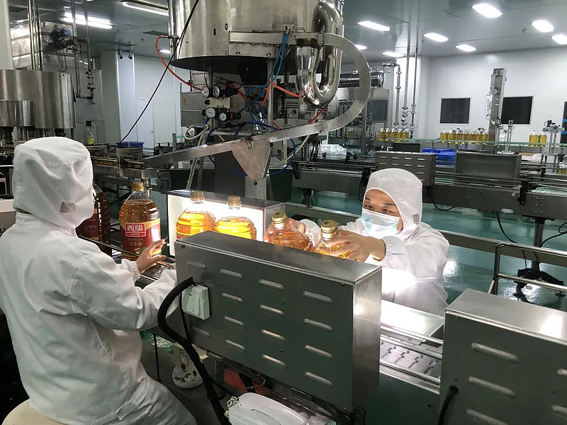 3月13日下午,记者来到陕西杨凌来富油脂有限公司生产车间,车间内一派忙碌景象,工人们正加班加点灌装生产。据了解,来富油脂作为全省重要食用油生产企业,面对当前疫情防控的严峻形势,从3月11号开始对厂区所有人员封闭办公,120多名职工住厂生产,从加工、储运到配送、供应等各环节无缝衔接,保障市场食用油供应不断档、不脱销。 “目前我们每天两条生产线的生产灌装能力达到了1000吨左右,可以满足一个二十万人的县城一个月的使用量。”陕西杨凌来富油脂有限公司党支部书记、总经理吕伟说。