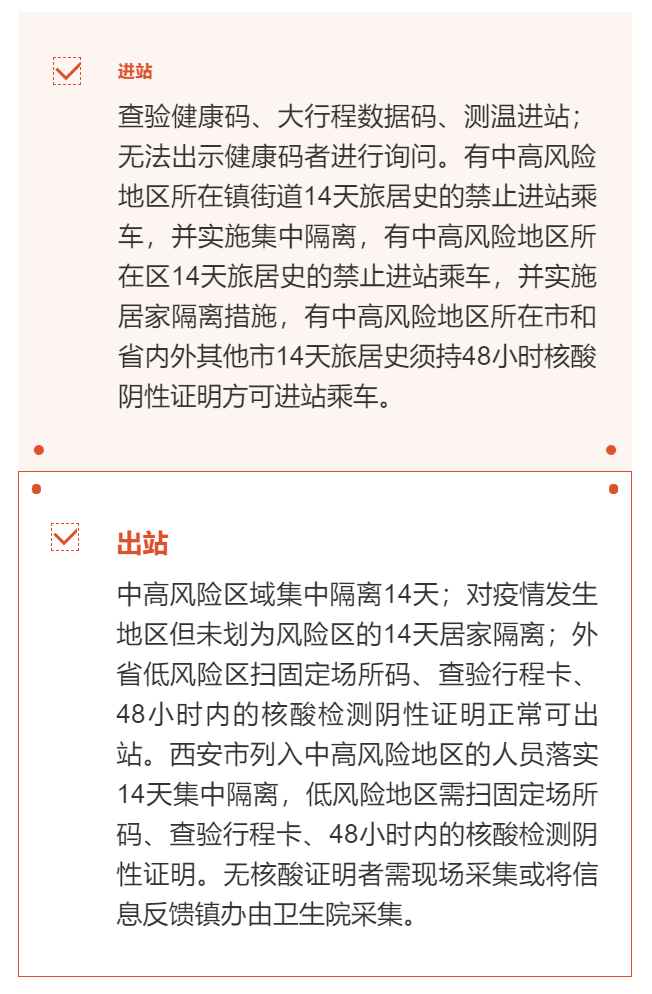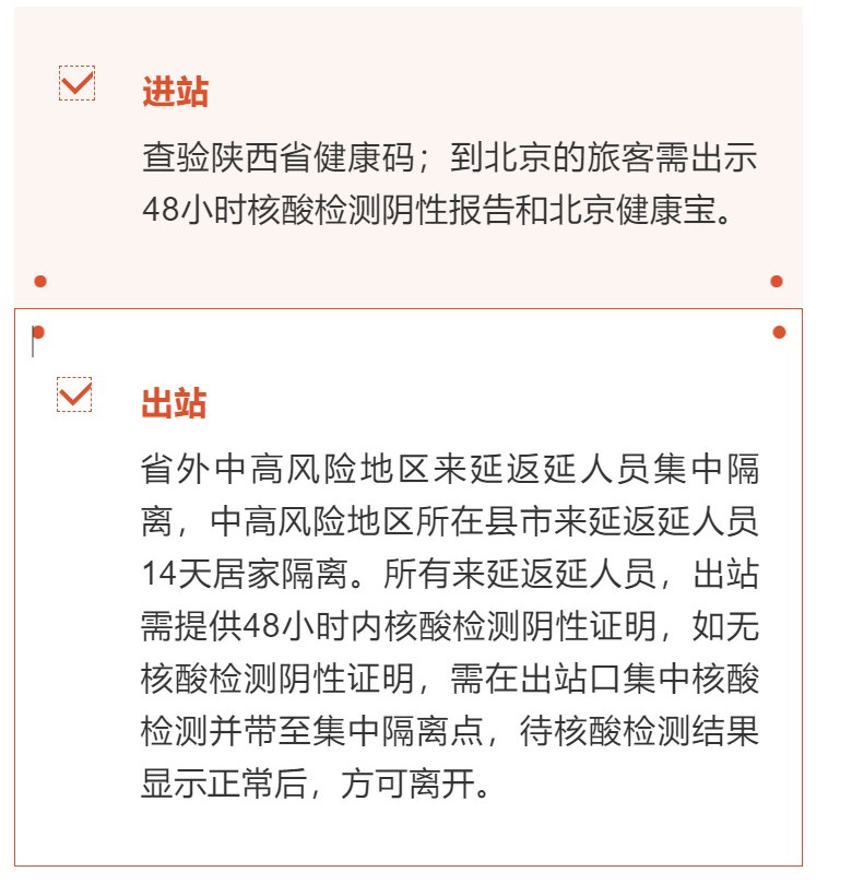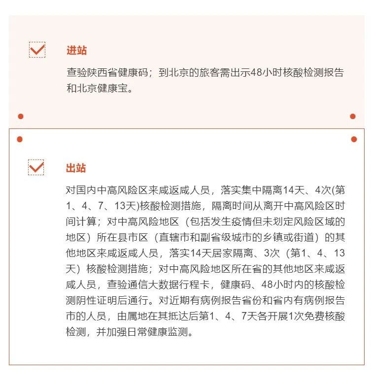 针对近期陕西多地疫情出现反复,为配合各地政府落实疫情防控政策,中国铁路西安局集团有限公司各大火车站对出行政策进行了调整,内容如下: