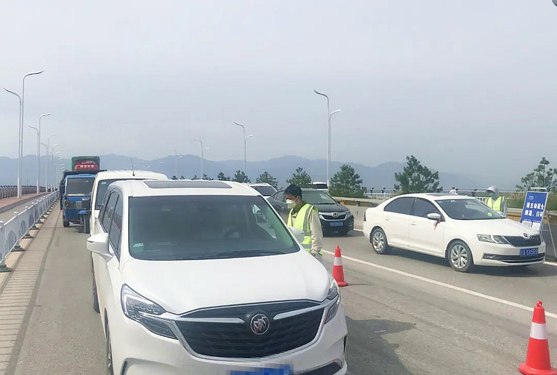 9月4日,记者在西宝中线(武功界)东口看到,车辆有序进出杨凌,工作人员逢车必查、逢人必查。