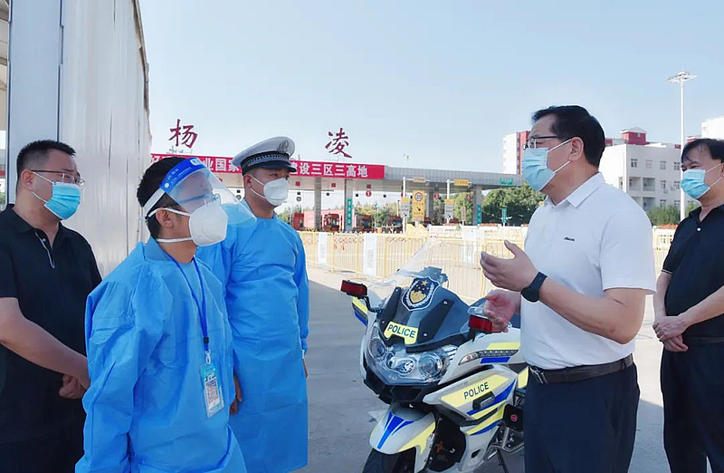 第29届杨凌农高会和中秋佳节将至,9月9日,杨凌示范区党工委书记黄思光来到西宝高速杨凌东出口和杨陵南站,检查农高会和节日期间疫情防控工作,看望慰问检查点工作人员,并通过他们向全区坚守疫情防控一线的广大工作人员致以衷心感谢和亲切问候。