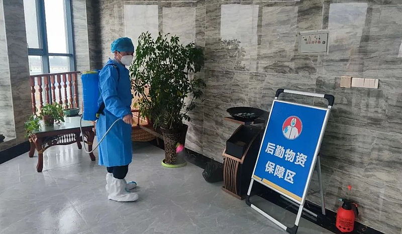 和王臻一样奋战在五泉众创隔离点的段世平,是杨陵区城投公司派驻的一名工作人员,在这里,他主要负责后勤保障工作。每天傍晚都是他最忙碌的时候,送餐、消毒、收集分拣垃圾……完成这些最基本的程序一般需要两个小时左右,而这时,身穿防护服的他早已汗流浃背。