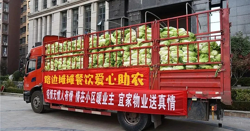 “通知32号楼的业主们,一家下来一个人,领取蔬菜。”