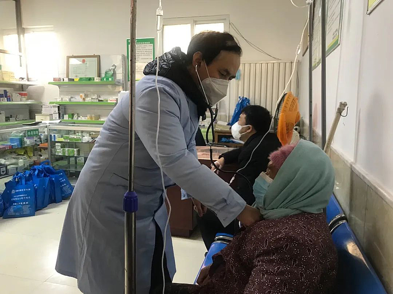 记者采访当天,赵晗刚刚休假,身体已经出现症状,有群众打电话专门找他看病、办理事务,为了保证精神状态,他给自己挂上吊瓶,坚持上班。“作为一个医生,要是给群众做不到力所能及的服务,我问心有愧。”