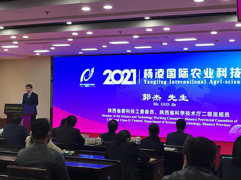 10月22日下午,2021杨凌国际农业科技论坛在西北农林科技大学开幕。白俄罗斯驻华大使尤里·阿列克谢叶维奇,西北农林科技大学校长吴普特,省委科技工委委员、省科技厅二级巡视员郭杰,联合国可持续农业机械化中心副主任安舒曼分别致辞。西北农林科技大学副校长罗军主持开幕式。