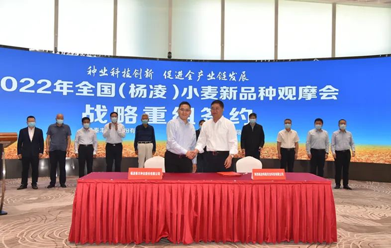 会上,康振生与贾锋为杨凌良科小麦生物技术研究院成立揭牌;杨凌秦丰种业股份有限公司战略重组陕西伟隆种业有限公司签约;与会人员云上观摩了小麦新品种及示范展示基地;杨凌种业创新中心小麦工作站首席科学家吉万全点评新品种观摩情况。陕西西瑞(集团)有限公司总经理李秦宏作报告。
