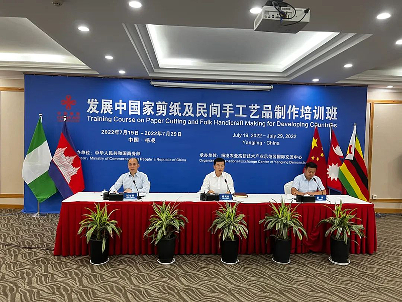 7月19日,由中华人民共和国商务部主办,杨凌示范区承办的发展中国家剪纸及民间手工艺品制作培训班在杨凌线上开班。陕西省商务厅、杨凌示范区管委会相关领导出席开班仪式并致辞。参加开班仪式的还有来自柬埔寨、尼泊尔、尼日利亚、津巴布韦等4个国家的32位学员。