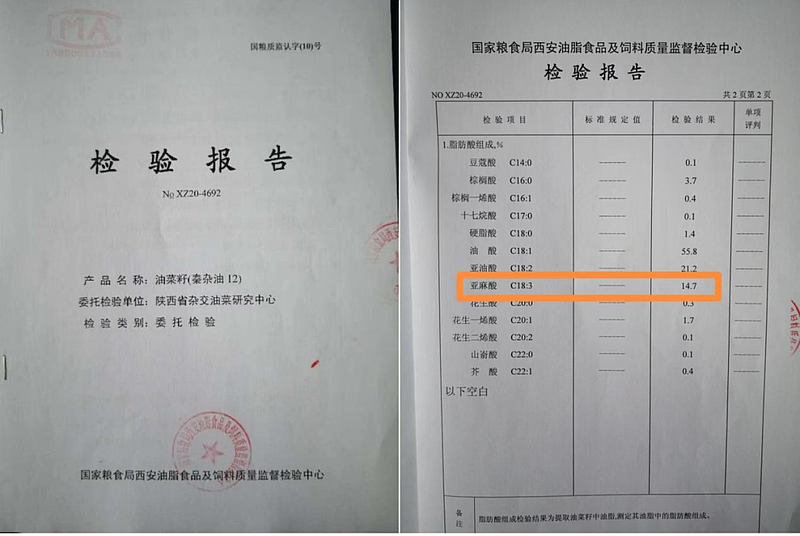 “华春油1号(原名秦杂油12)”α-亚麻酸含量高达14.7%,较一般春油菜品种高60%以上,创春油菜高亚麻酸油菜品种的新高。