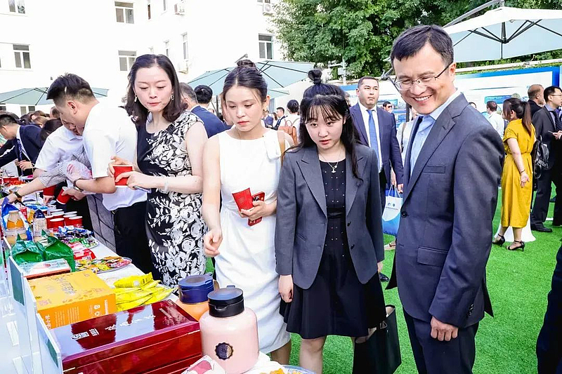 活动中,上合组织农业基地特色产品展示品鉴活动受到参会代表的欢迎。大家或端着特色果汁、葡萄酒慢慢品味,或拿起火龙果、甜瓜感受甜蜜的味道,或品尝来自上合组织国家的零食,在特色产品中体会“上合力量”。