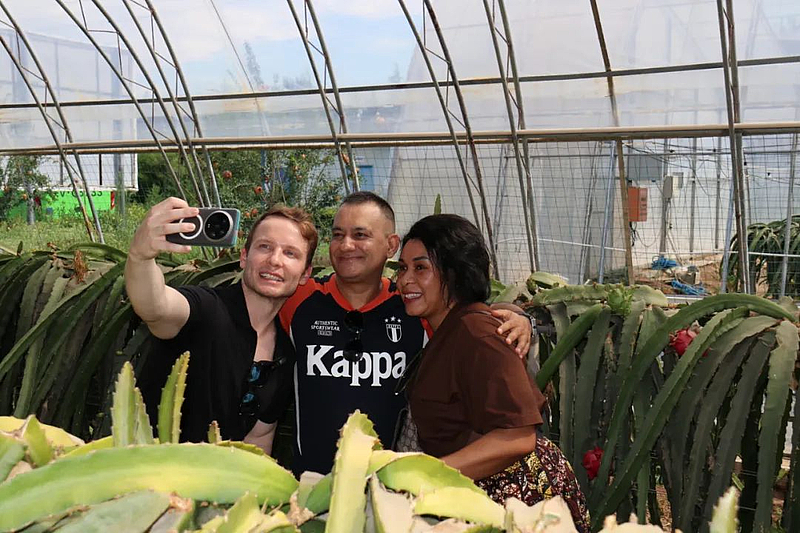 总台亚非中心泰米尔语记者阿龙则在杨凌国际猕猴桃创新创业园收获了别样的惊喜:“今天早上我在猕猴桃基地做了直播,这是我第一次看见猕猴桃在树上的样子,我觉得很有意思,所以我把它分享给泰米尔朋友。”阿龙兴奋地表示,“杨凌的农业太厉害了,希望下次还有机会再来。”