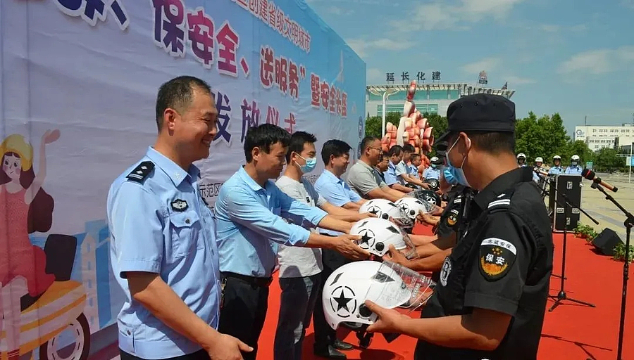6月23日下午,杨凌创建省级文明城市“降事故、保安全、送服务”暨安全头盔发放仪式在会展南广场举行。