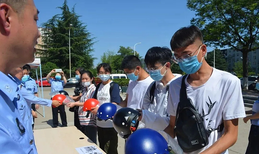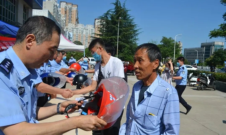 “头盔是骑摩托车安全的一个重要工具。我们这次发放头盔总共有300多个,头盔发到每一个人手上,既能起到一个安全防护作用,也是对共建共享文明交通的一个宣传。”示范区公安局党委委员、副局长马亚强表示。