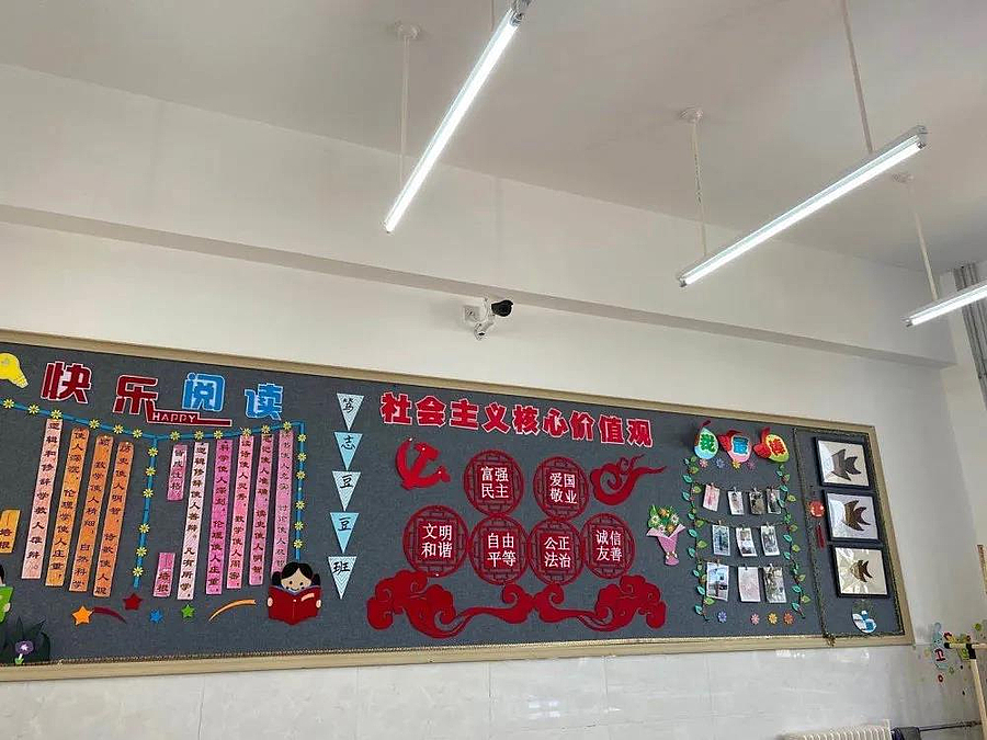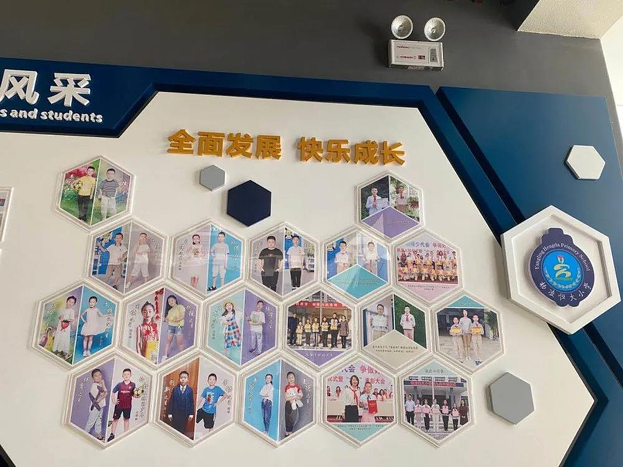 走进干净整洁的校园:社会主义核心价值观醒目可见;教学楼门前展示着学生暑期的书法、图画、手工等作品,琳琅满目;广场上还精心准备了可爱的卡通留影区,吸引了不少家长和孩子拍照记录美好点滴。