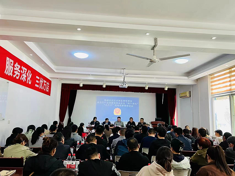 为深入落实国家市场监督管理总局《企业落实食品安全主体责任监督管理规定》和省局落实食品安全“两个责任”“六个十”专项行动相关要求,结合我区正在开展的高质量项目推进年、营商环境突破年、干部作风能力提升年“三个年”活动要求,4月11日下午,杨凌示范区市场监督管理局在杨凌步源堂乳业有限公司召开全区食品生产企业落实“两个责任”“六个十”现场观摩暨推进会,全区60家食品生产企业食品安全总监和食品安全员共90余人参加了观摩会。