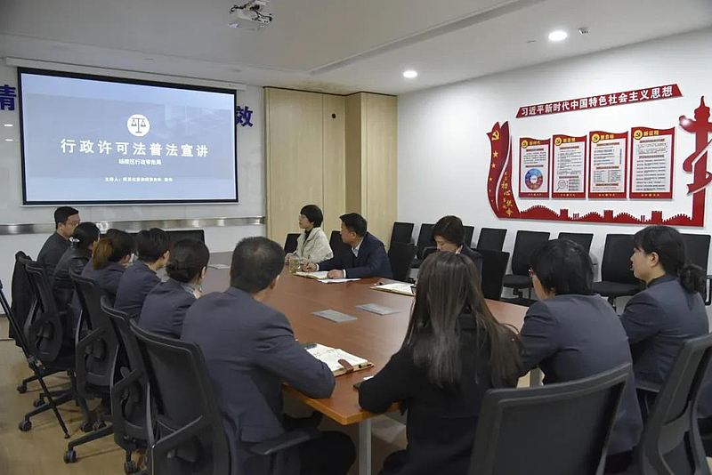 “根据宪法宣传周活动安排,我们对干部职工进行行政许可法培训,提高依法行政、依法许可的能力和水平,打造精简、规范、便民、高效的政务服务。”为增强职工宪法意识,让法治观念深入人心,12月2日,在第八个国家宪法日来临之际,杨陵区行政审批局以法治大讲堂的形式开展“宪法进机关”活动。