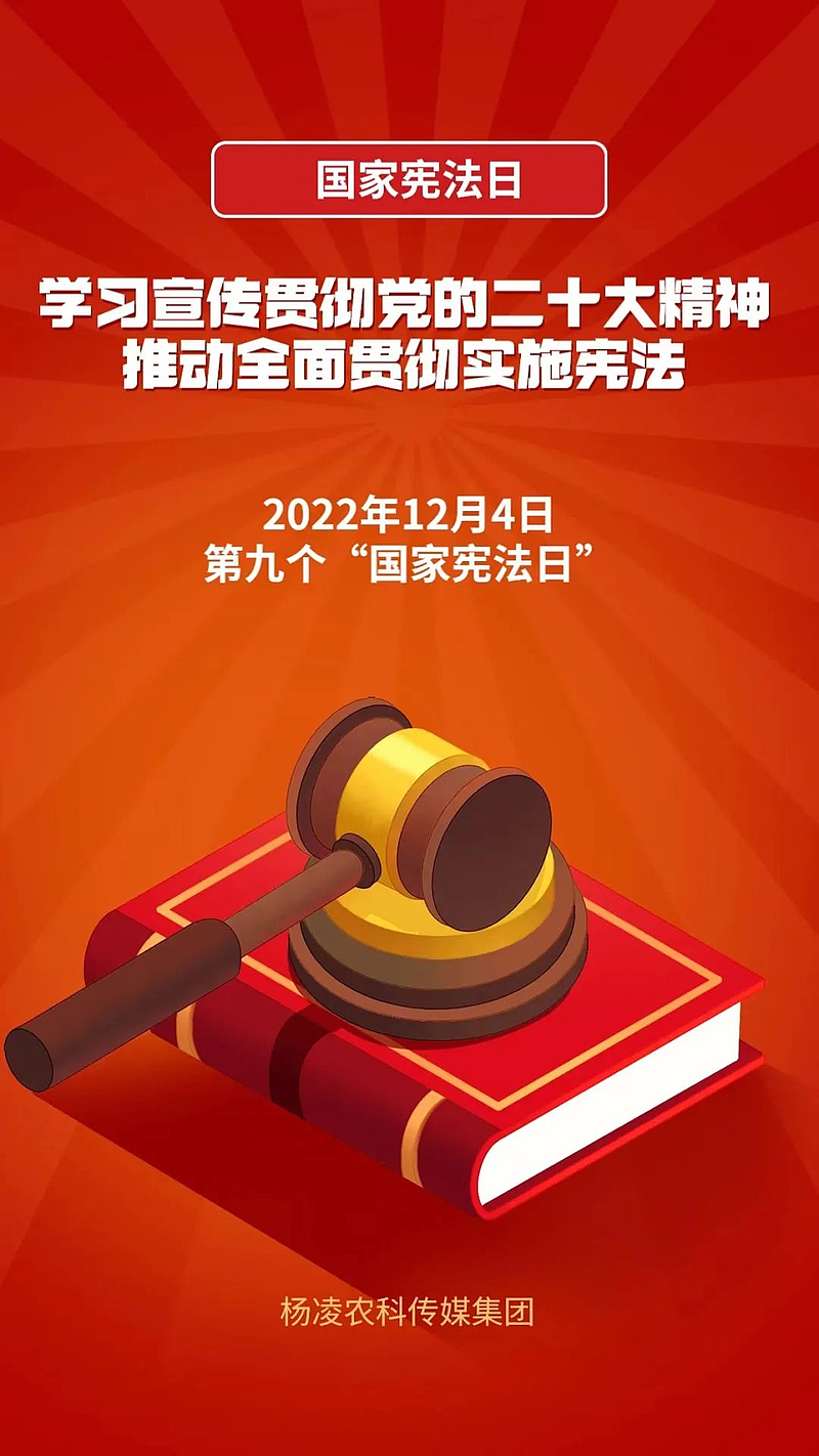 今年12月4日是第九个国家宪法日,也是我国现行宪法公布施行40周年。在第五个“宪法宣传周”来临之际,杨凌示范区党工委全面依法治区委员会办公室、杨凌示范区党工委普法工作领导小组办公室、杨凌示范区司法局下发了《关于开展“12·4”国家宪法日暨“宪法宣传周”活动的通知》,要求杨陵区委依法治区办、党工委管委会各工作部门、各直属机构要结合工作实际,认真组织实施,通过深入学习宣传贯彻习近平法治思想和习近平总书记关于宪法的重要论述,大力加强宪法学习宣传,让宪法家喻户晓、深入人心,努力使尊法学法守法用法在全社会蔚然成风,为奋力谱写杨凌高质量发展新篇章营造良好的法治环境。