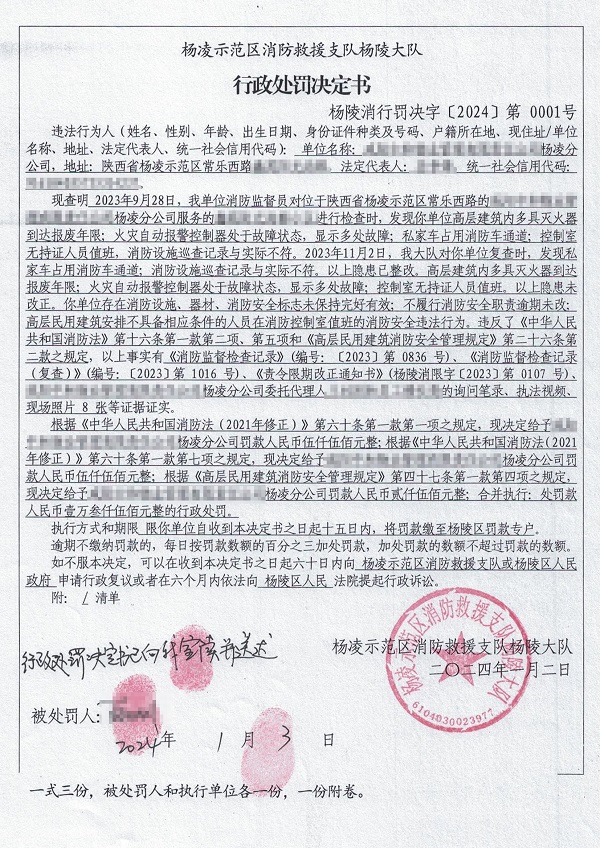根据《中华人民共和国消防法》第六十条第一款第一项、第七项;《高层民用建筑消防安全管理规定》第四十七条第一款第四项规定,合并执行处罚款人民币壹万叁仟伍佰元整的行政处罚。要求该单位自收到行政处罚决定书之日起十五日内,将罚款缴至杨陵区罚款专户。