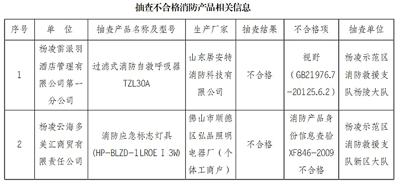 为进一步规范全区消防产品市场秩序,严厉打击使用不合格消防产品的违法行为,杨凌示范区消防救援支队在开展2025年度消防产品质量监督专项抽查工作,现对辖区内发现的不合格消防产品进行曝光。