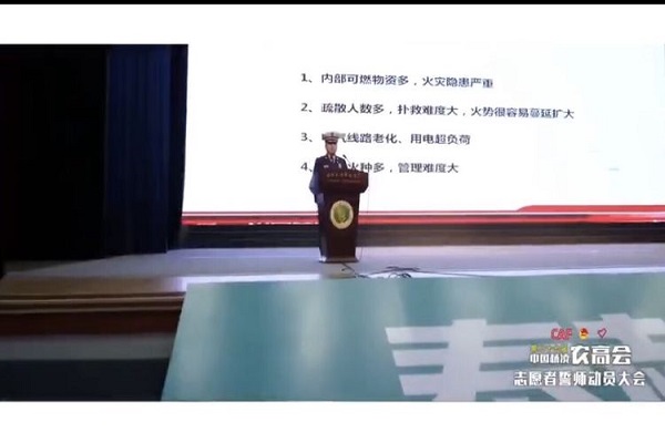 培训过程中,支队宣传人员结合“农高会”特点,详细了分析“农高会”场馆消防安全特点,结合自己丰富的理论知识及多年来的防火经验,向志愿者们讲授火灾的类型、火灾的防范、火场自救互救常识、现场急救知识以及消防设施的正确使用方法。并以活动中心场馆为例,讲解安全出口位置及发生火灾如何安全有序疏散等内容,要求志愿者要重视消防安全,掌握基本的消防常识和灭火常识,积极主动参与此次消防安保工作。