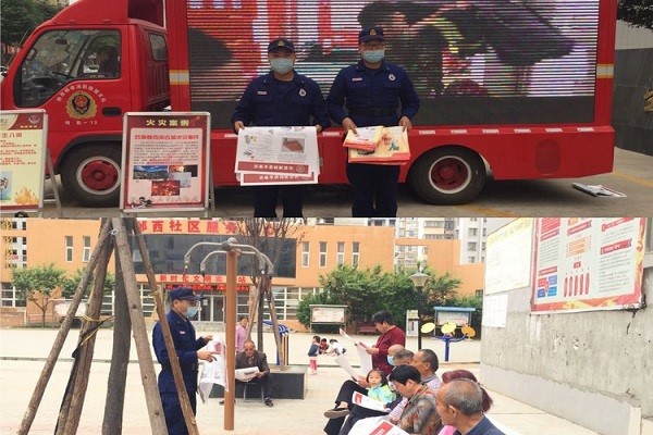 二、依托社区深入普及消防宣传,充分发挥支队宣传服务队贴近群众互动优势作用,深入社区家庭,走街串巷,向群众普及防灭火和逃生自救常识,力争将消防安全常识深入群众;借助多功能流动消防宣传车走街串巷,讲解消防安全常识,发放各类消防宣传资料,依托各社区和广场宣传栏、宣传橱窗,通过在张贴醒目的消防宣传标语,消防宣传警示语、消防警示漫画、播放消防安全广播等。使更多群众接受消防安全教育,普遍掌握最基本的防火、灭火、疏散和逃生自救知识,能够把所学知识运用到实际生活当中,在火灾事故中组织疏散和逃生自救,减少火灾事故中的人员伤亡。