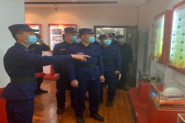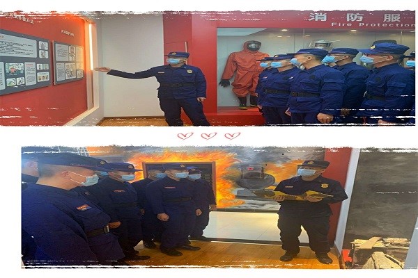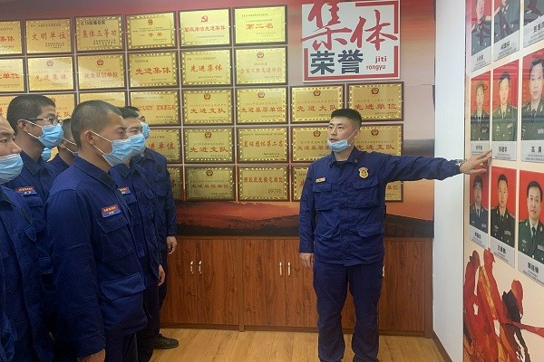 指导员柳龙飞为新消防员讲解队史荣誉和支队历任主官;副中队长孙浩天讲解支队基本情况和处置重大火灾案例;新训一班长王凯带领新消防员参观新区大队荣誉室;新消防员观看支队大型救援现场和文化展板。