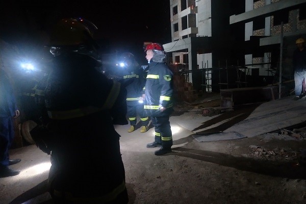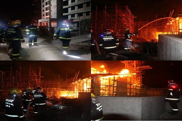 3时40分,全勤指挥部和其他增援力量全部到场。该小区正在建设,楼内没有消防水源,也没有可利用的消防设施,现场道路情况比较复杂,火势发展又非常迅猛,王展鹏支队长当机立断,指令副支队长任海举组织扑救楼下飞火引燃物,并协调组织现场供水,命令特勤消防站罗平俊带领12名指战员,携带水带、水枪、水带挂钩等器材,登顶内攻。现场浓烟、高温、向指战员袭来,被烈火烘烤的脚手架摇摇欲坠,随时都有倒塌的可能,但没有人后退半步。