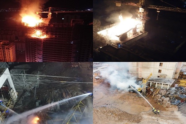 5月4日凌晨3时20分,杨凌支队指挥中心接到群众报警,位于五湖路和新桥路交叉口,尚在建造中的泰和府17号楼顶层(共26层)着火,并迅速蔓延。指挥中心立即调派东新路特勤消防救援站、康乐路消防救援站、揉谷卫星消防站、博学路卫星消防站、梁氏窑卫星消防站10车50人赶往现场扑救,同时支队长王展鹏带领全勤指挥部赶赴现场。