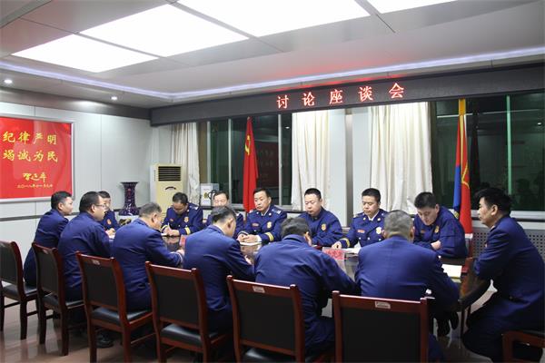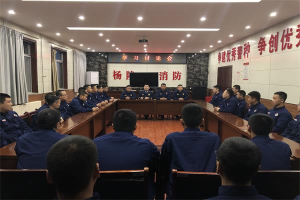 在收听收看新闻节目后,支队各级分别组织召开了学习贯彻习近平总书记授旗训词精神座谈会。大家结合自己的一年来的工作开展情况,踊跃发言,一致认为习近平总书记的授旗训词,指明了综合性消防救援队伍的地位作用和职责使命,提出了队伍建设发展的总纲要和总方针,点亮了我们砥砺奋斗的前进灯塔,开启了我们脱胎换骨的新征程。