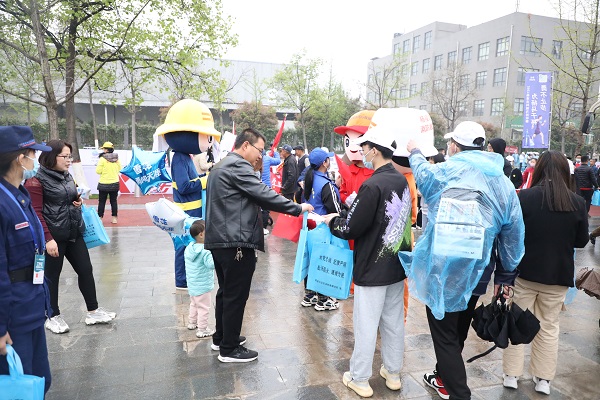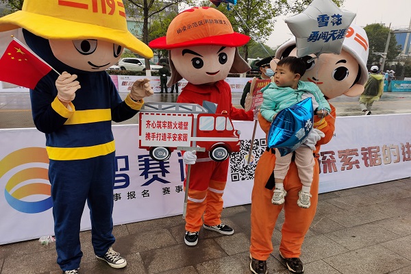 在赛场的起、终点,宣传人员和消防志愿者,穿戴消防形象的卡通布偶向过往人员发放了《应急逃生方法》、《家庭防火手册》等宣传资料及印有消防知识的小礼品,引导社会群体关注家庭、社区火灾预防,学习初期火灾扑救知识,极大地调动了群众参与消防、学习消防知识的积极性。此次赛事有效融入了消防元素,引导全民关注消防、参与消防,形成了浓厚宣传氛围,不少家庭亲子组成员在收获温馨美好马拉松时光的同时,还让孩子们学习到了许多消防安全知识,传递了消防正能量。