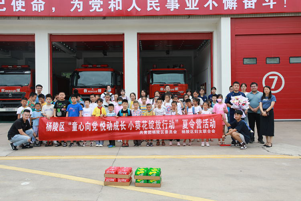 7月28日,杨凌支队联合区共青团杨陵区委员会、杨陵区妇女联合会开展“关爱留守儿童 传递红门温暖”主题宣传活动,邀请区内50名留守儿童参与消防队站开放日活动。