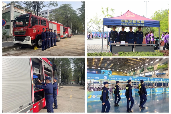 强化现场备勤 夯实安全基础。此次消防安保活动,共出动执勤车辆10台,现场备勤人员65余人,并组织专人对消防执勤车辆装备器材进行了认真细致的检查,保证执勤车辆油、气、水、灭火剂时刻充足,随时做好处置突发事件的各项准备工作,为这场精彩的比赛织就了最严密的安保防线。