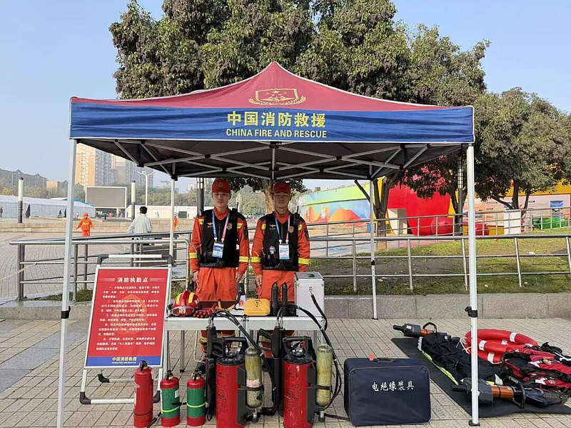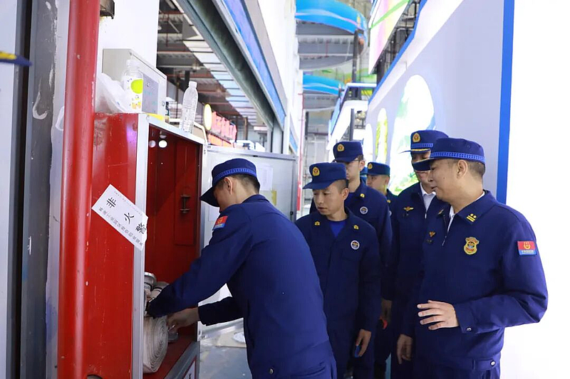 内外兼顾,精准布防。科学划定“固定执勤点+流动巡逻组+应急备勤队”防控网格,在展馆内(外)设置执勤点22个,配备消防车13台、器材装备327件套,实现“点上驻守、线上巡逻、面上管控”的立体防控格局,确保突发情况“秒级响应、快速处置”。