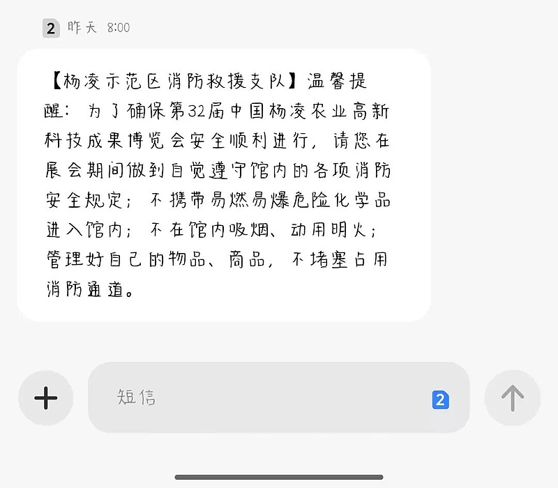 为全力护航第32届中国杨凌农业高新科技成果博览会消防安全,杨凌支队坚持“宣防一体、精准覆盖”工作思路,聚焦“靶向宣传、志愿同行、敲门入户、全域亮屏、平台发力”五大抓手,多点协同、全链发力,织密织牢“宣传+防范+引导”一体化消防安全网,为盛会营造安全稳定的消防环境。