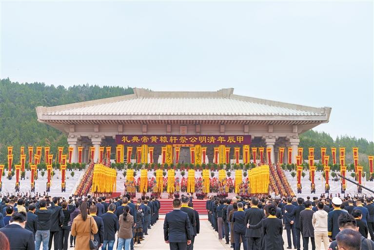 4月4日上午,甲辰(2024)年清明公祭轩辕黄帝典礼在黄陵县轩辕广场举行。 本报记者 陈玮摄