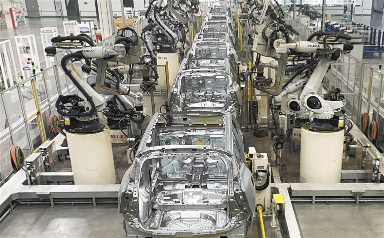 “智能化装备是车企的新‘打工人’。”吉利汽车宝鸡制造基地车身二厂现场安全管理专员张磊说,在这里,500多个零部件就像拼积木一样被迅速拼装完成。