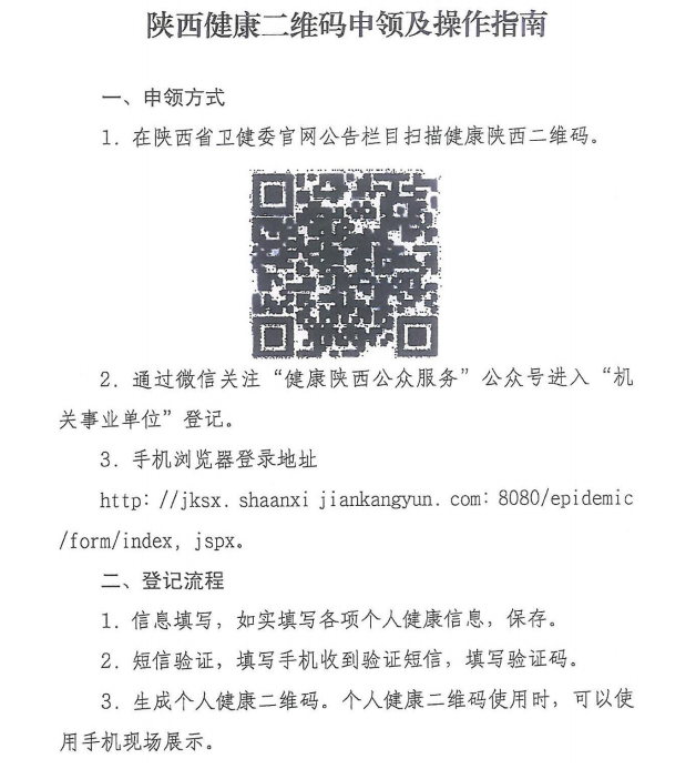三、陕西健康码申领工作作为疫情防控的重要措施,各部门务必狠抓落实,切实担负起管理责任,尽快发挥陕西健康码在疫情防控中的重要作用。