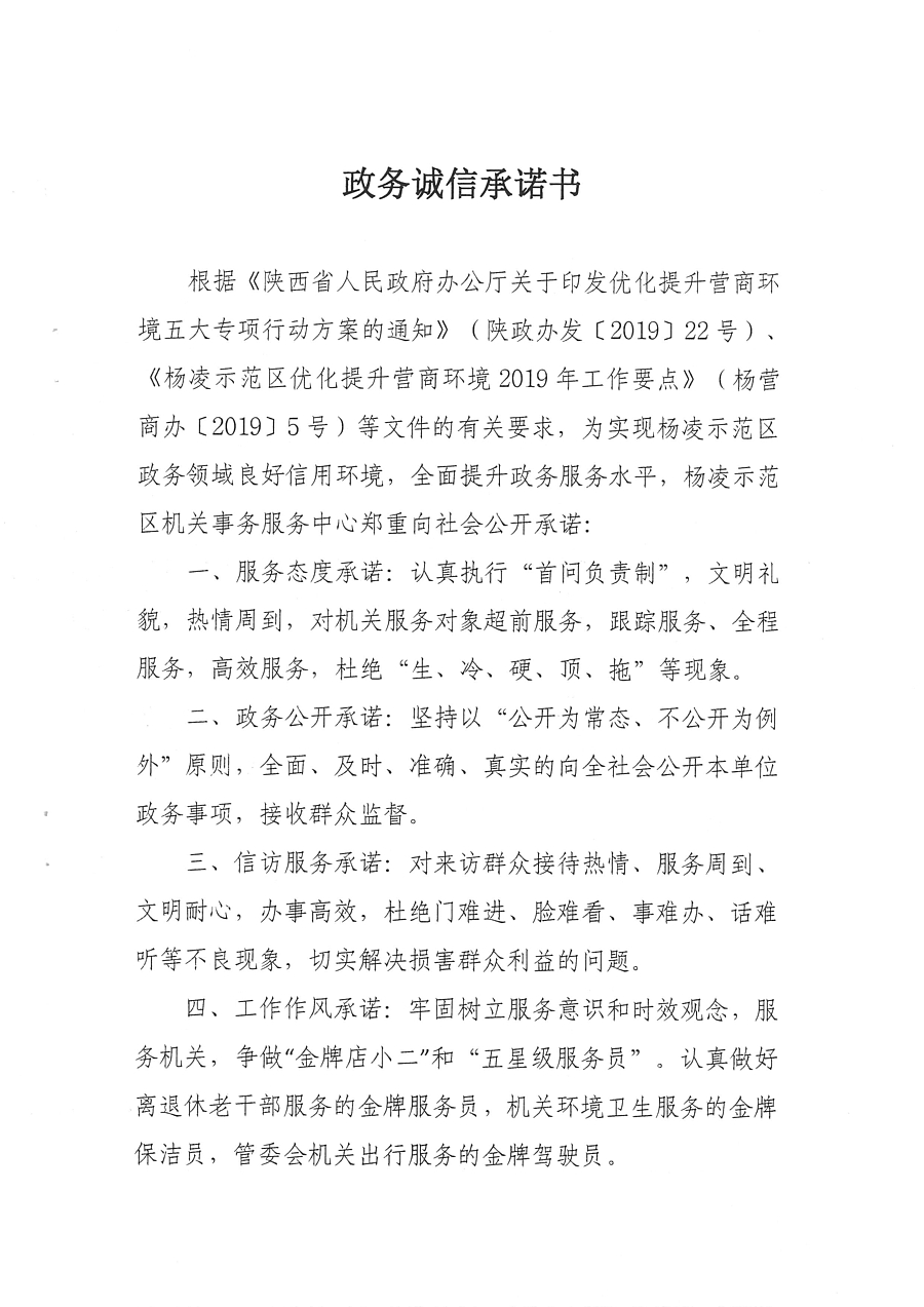 杨凌示范区机关事务服务中心政务诚信承诺书