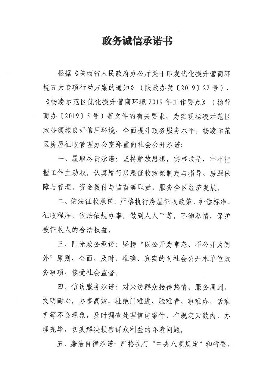 杨凌示范区房屋征收管理办公室政务诚信承诺书