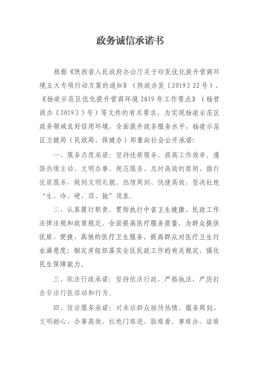 杨凌示范区卫健局政务诚信承诺