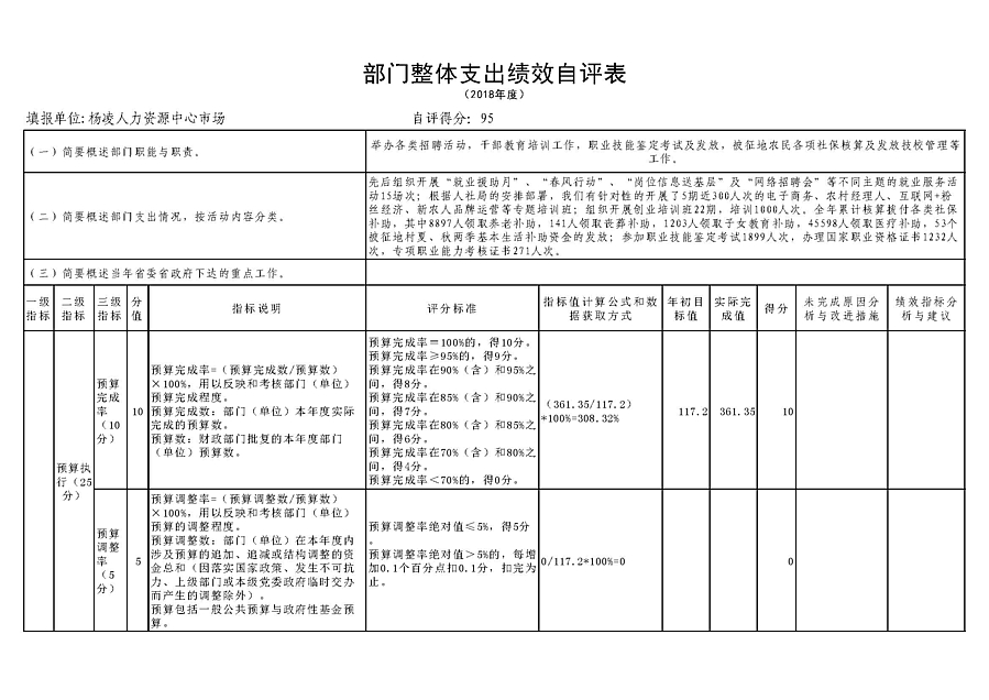 六、2018年度部门绩效管理情况说明