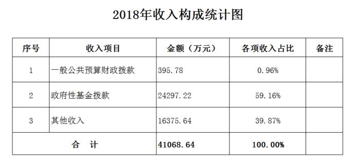1.2018年度收入总计41068.64万元,收入总体情况比上年增加16753.65万元。2018年度支出总计13629.52万元,支出总体情况比上年减少6931.71万元。