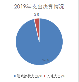 2019年财政拨款支出379.84万元,占本年支出合计的96.50%。与上年相比,财政拨款支出减少91.7万元,减少19.45%,主要原因是财政安排金融发展专项减少。