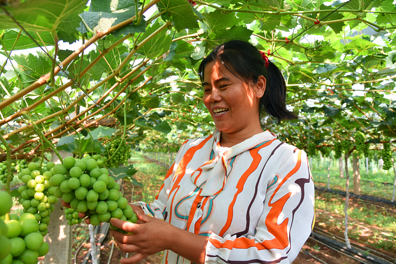 盛夏时节,走进揉谷镇新集村,现代化的葡萄园中硕果累累。村民陈亚莉种植了27年葡萄,作为村里的葡萄种植大户,10亩葡萄园是她家主要经济来源,去年她们家将过去的“巨峰”葡萄换成了“阳光玫瑰”,这给他们的家庭收入带来了阳光。